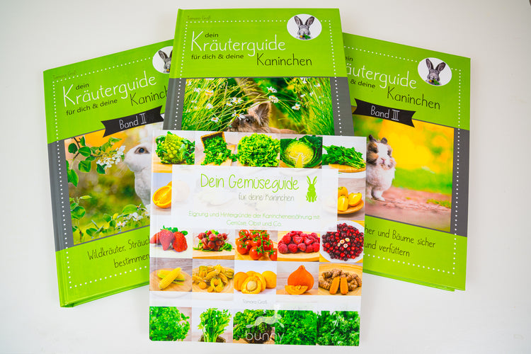 Bücher und Ratgeber auf dem aktuellstem Kenntnisstand – auch das soll bei uns nicht zu kurz kommen. Gerade für Kaninchen sind wahnsinnig viele veraltete und überholte Informationen zu finden. Sowohl im Netz, auch als in antiquarer Literatur. Der Fokus liegt bei den Kräuter- und Gemüseguides ganz auf der Ernährung. So könnt ihr euch umfassend über Pflanzenbestimmung, Heilwirkungen, Giftpflanzen, aber durch den Gemüseguide auch alles rund ums Gemüse füttern & die pysiologischen Hintergründe der Kaninchen informieren.